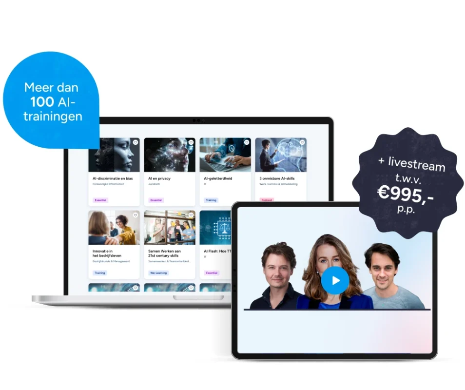 In 4 weken compliant én productiever: voldoe aan de EU AI Act en ontwikkel AI-skills die tot 43% efficiëntiewinst opleveren, ondersteund door onze AI-bundel en een exclusieve gratis livestream.